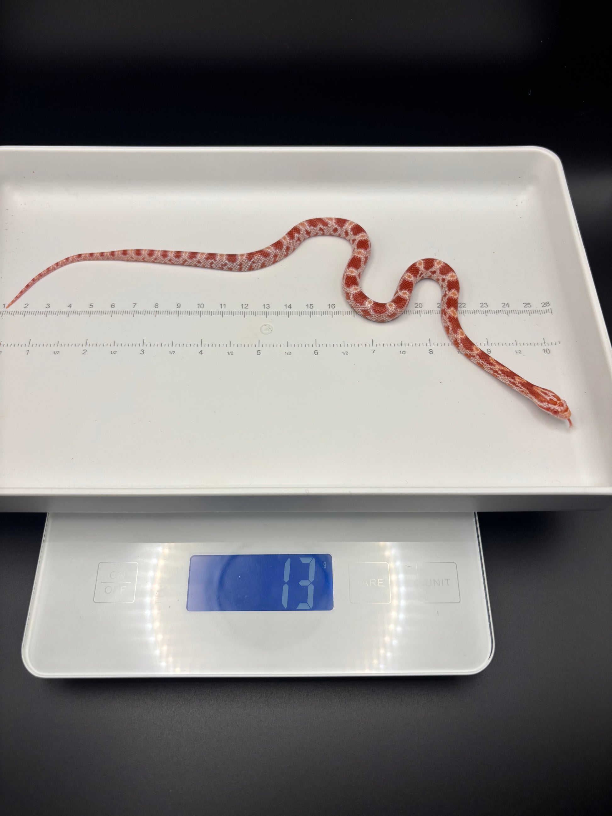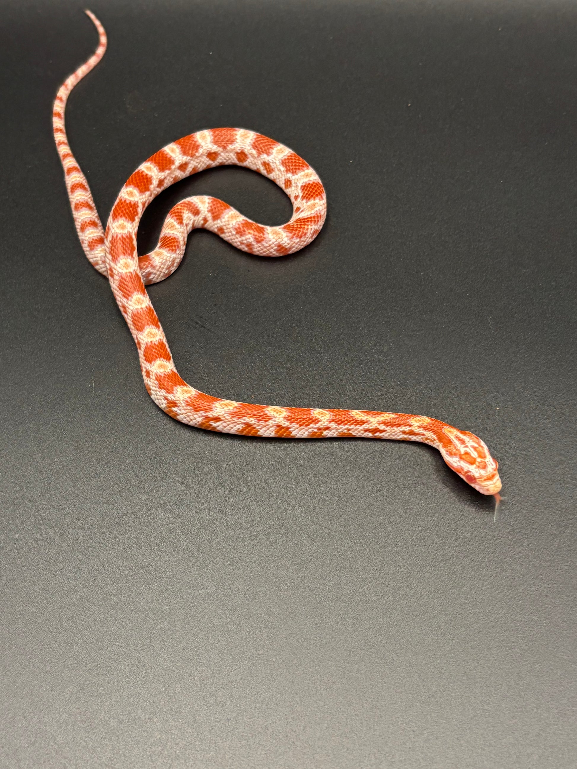 This lady is also Het Redcoat Hypo Anery. Also 66% Pos Het Motley. Produced by Cascade Corns LLC